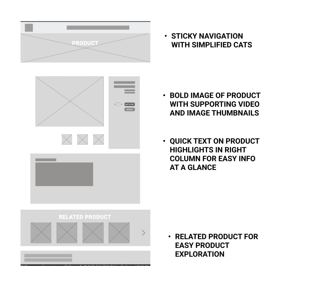 I knew that we needed to understand our user pain points before we could start designing. Our Technical Support specialists had sited users being “confused” and having issues finding products on our website. Creating site architecture helped visualize complications in our organization. I sought to eliminate confusing categories in and have revised architecture prepared for the data mapping in the next stages of the migration.
