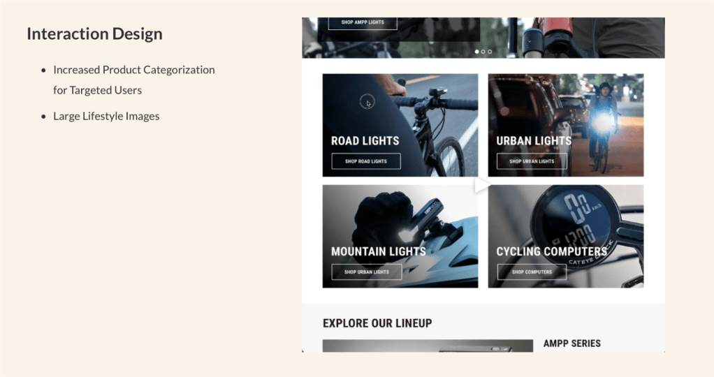 For visual direction and best practices for incorporating lifestyle content I looked at Patagonia. I also closely examined information architecture of other sites using the BigCommerce platform, including those from Santa Cruz.