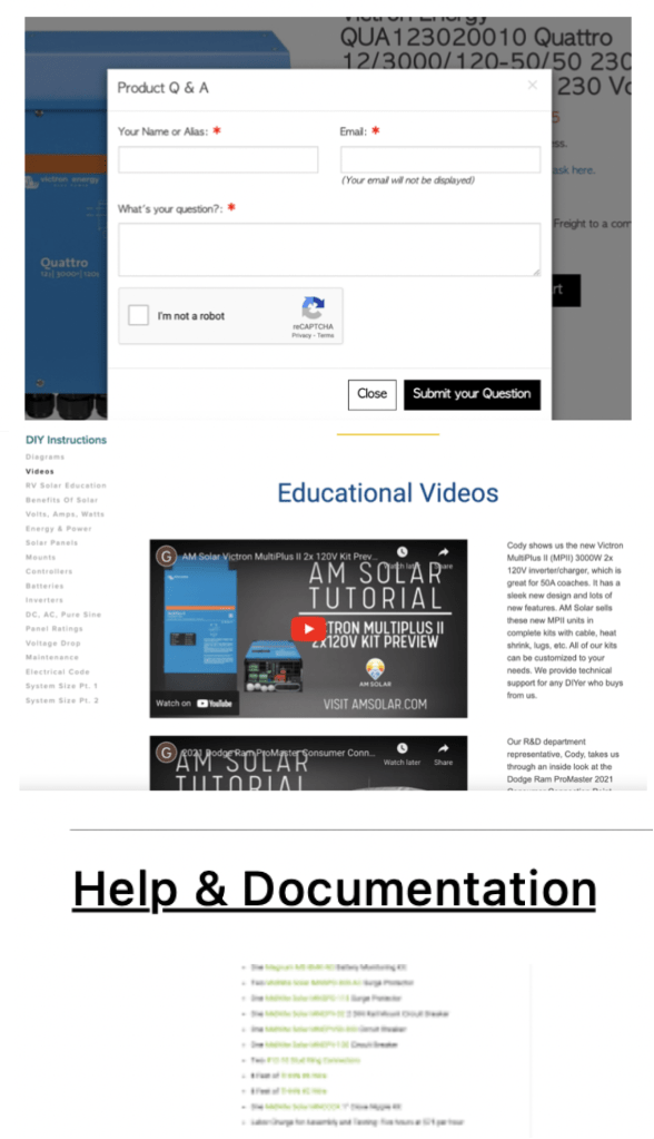 We also created a resources page, that includes a section for FAQ and tutorials, so users who are on the fence about buying a product because of an outstanding question can find answers directly on the RVSC site, and won’t abandon their web session.