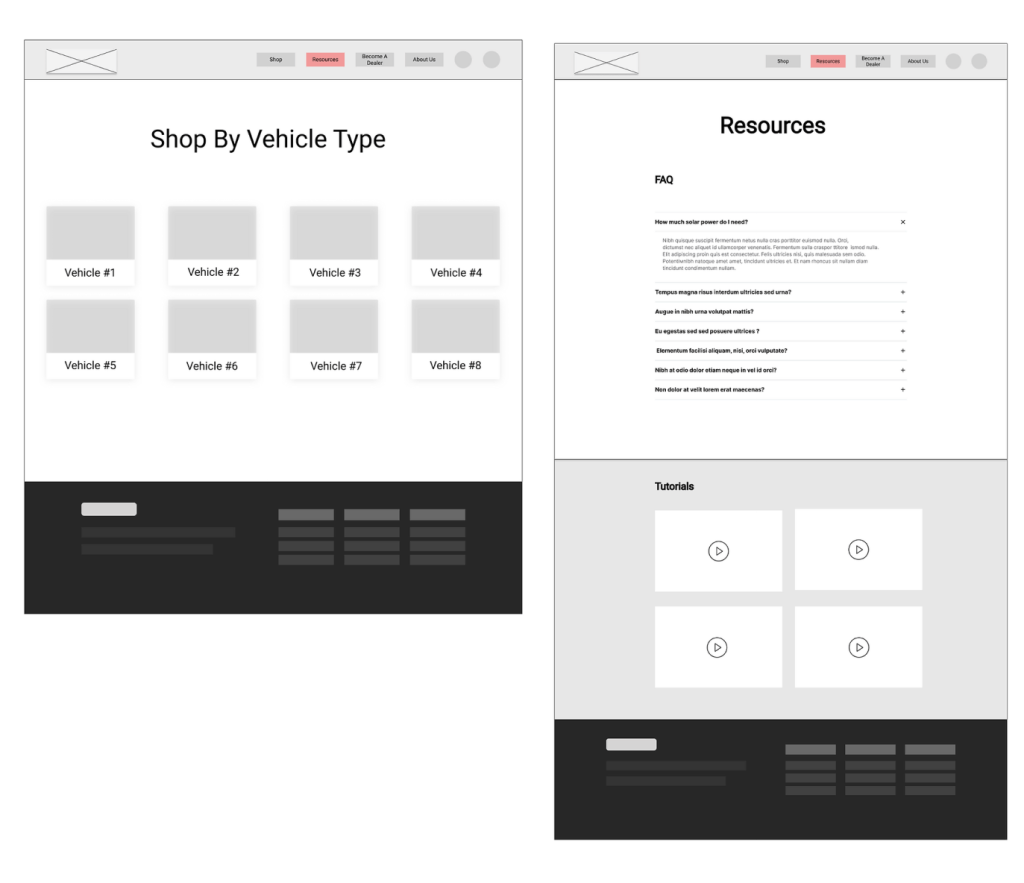 We created an additional page for users to choose the vehicle type they are shopping for, in order to help them narrow down their search. This should greatly benefit users like Joe, to help direct him in his shopping needs. The “Shop By Vehicle Type” page is where users will land after clicking the CTA prominently featured on the Hero image of the homepage.