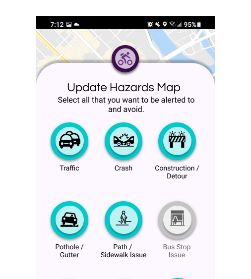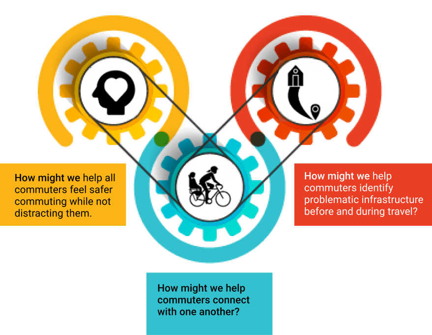 The research-based goal was to design an easy-to-use mobile application that allows users to route around relevant hazards and connect with other commuters.