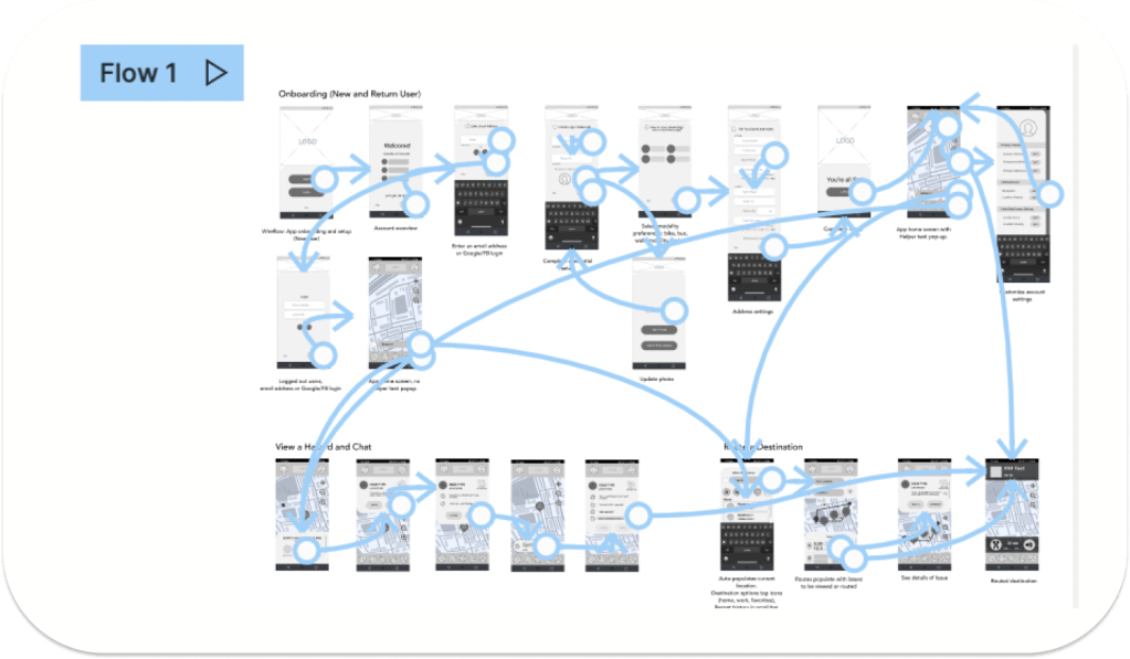 User feedback revealed a positive routing experience, but frustrations with both chat and hazard features. I revisited user research to explore the following questions to guide my flow development. I used low fidelity prototypes to test these areas for improvement before moving on to visuals.