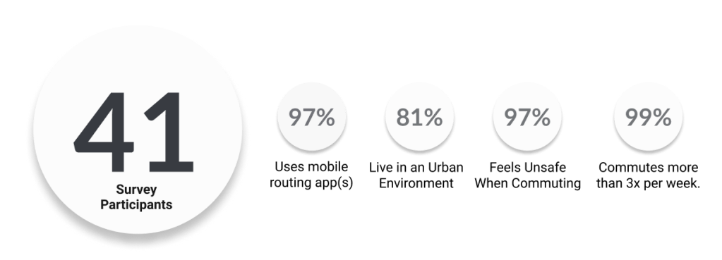 In my next step, I reached out to users directly through a screener survey. Primary research helped me better understand the commuter’s perceived safety levels and the potential hazards.